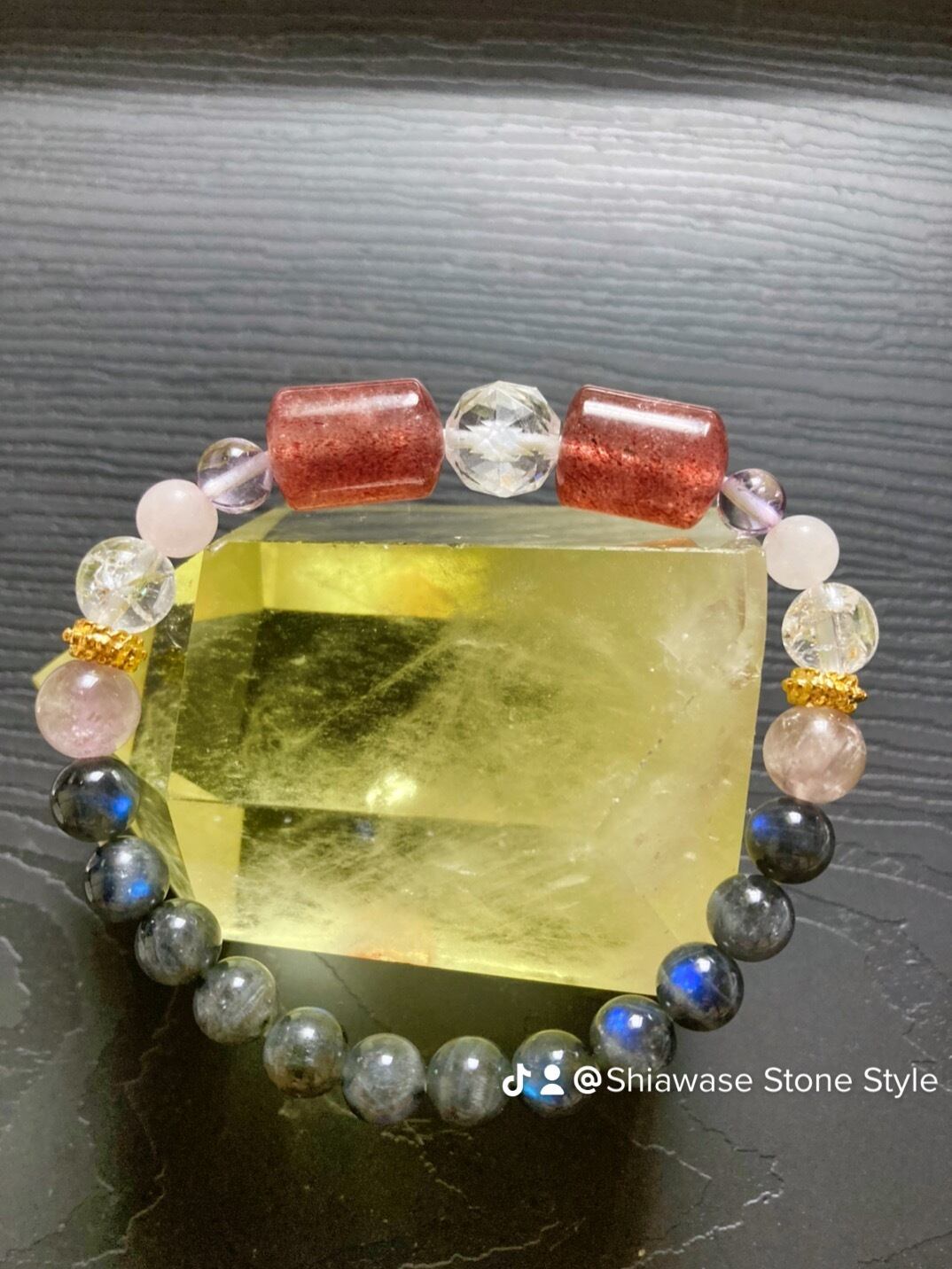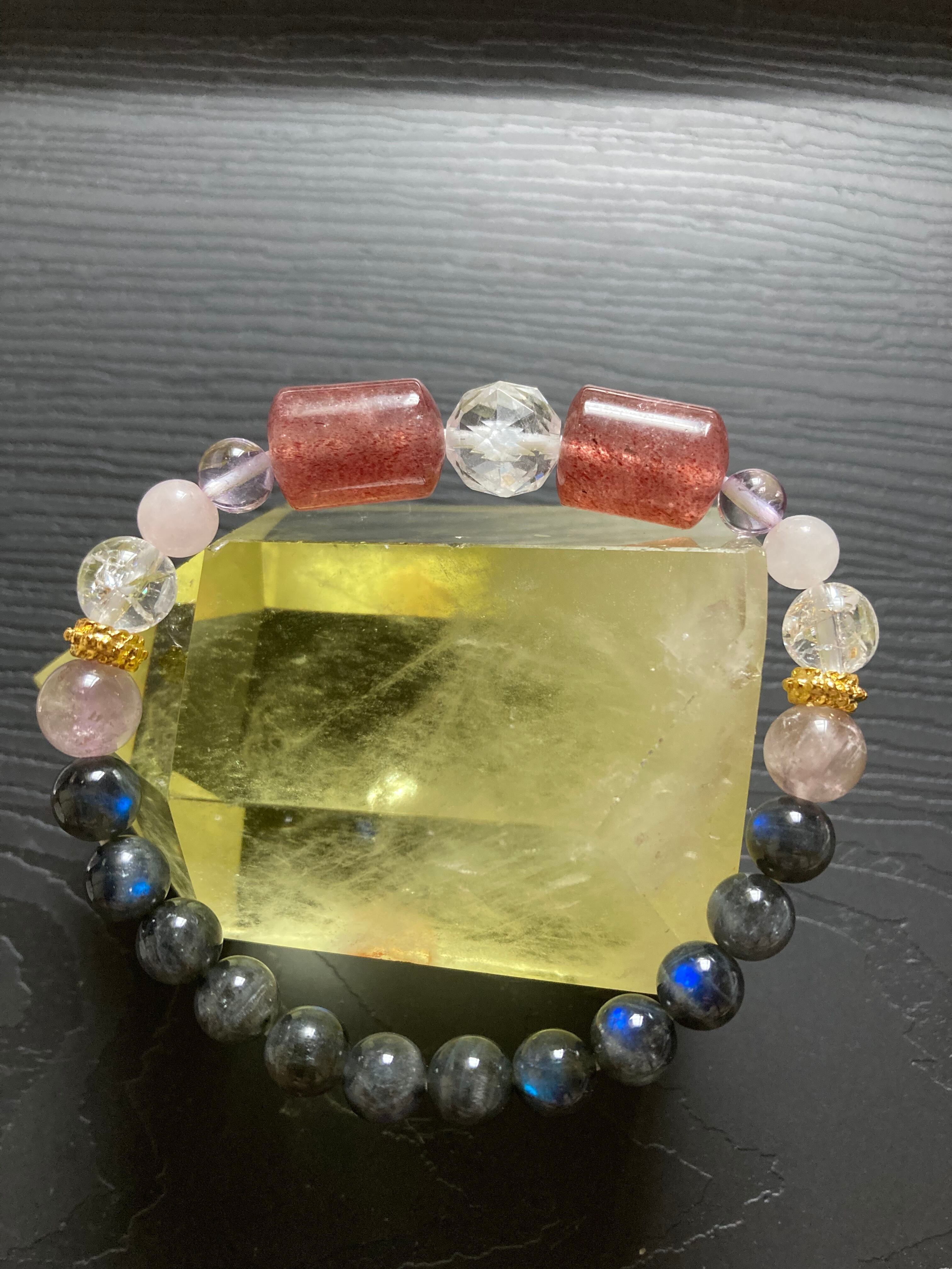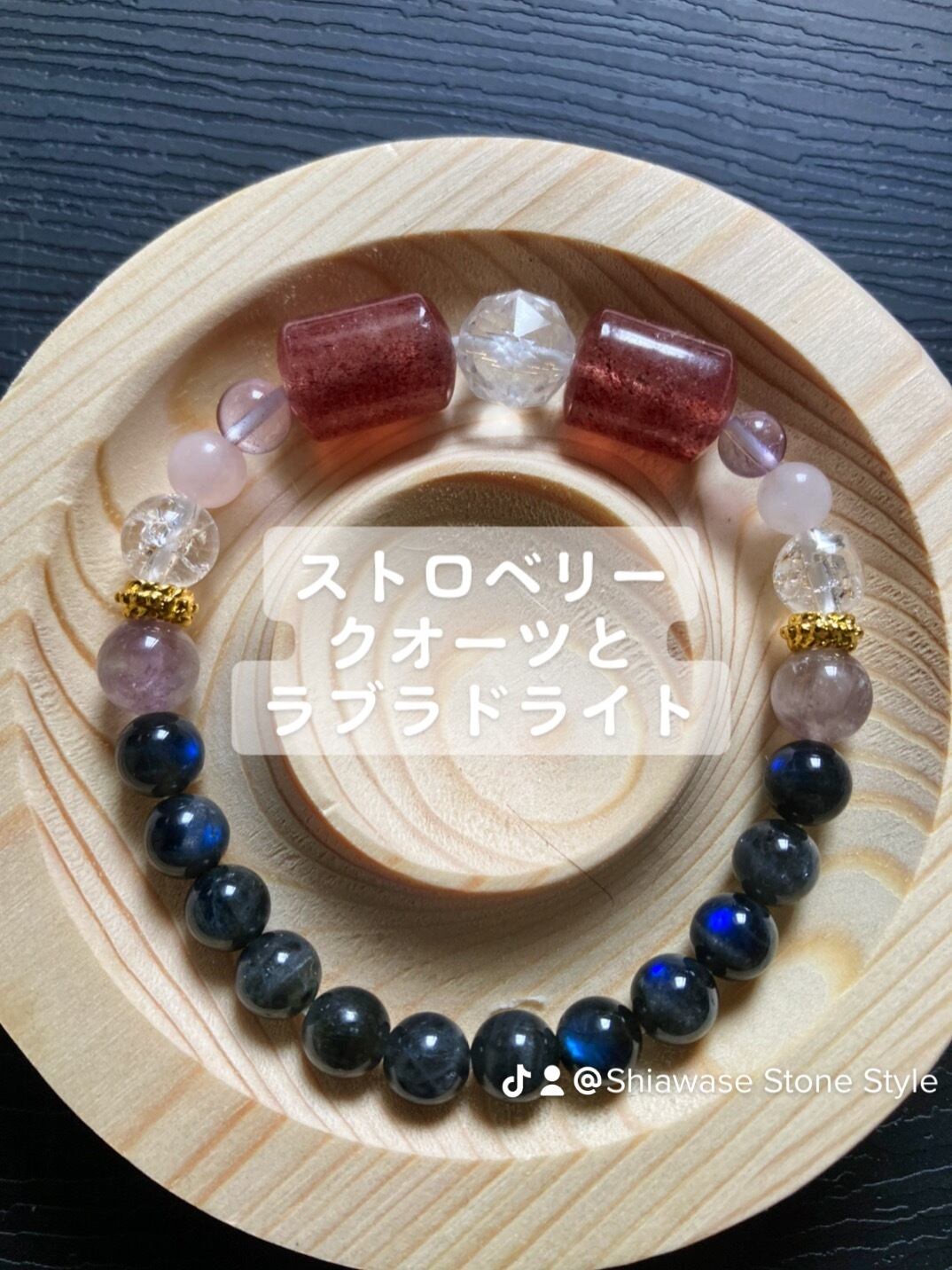 ストロベリークオーツとラブラドライトで魅惑の天然石ブレスレット♪