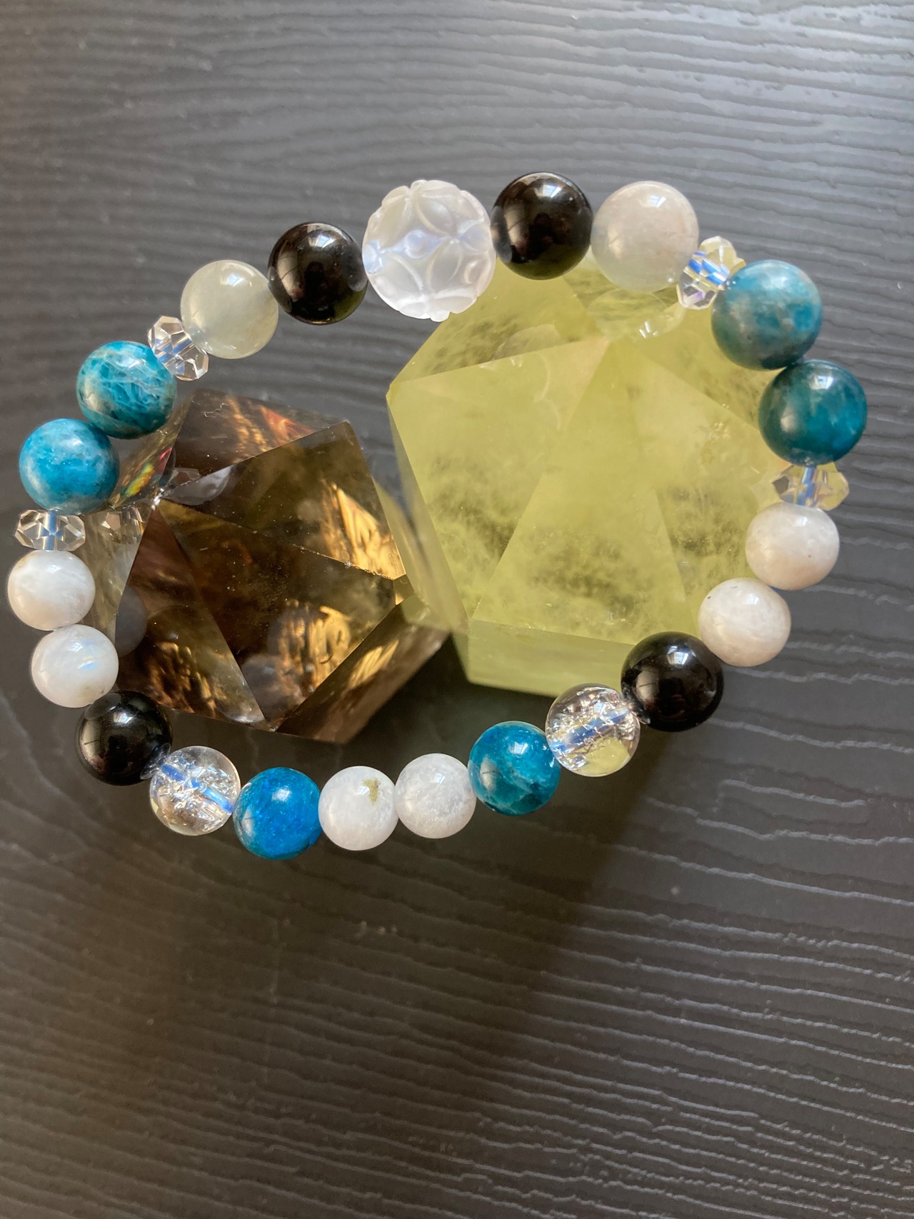 四つ葉のクローバーパーツの天然石ブレスレット♪