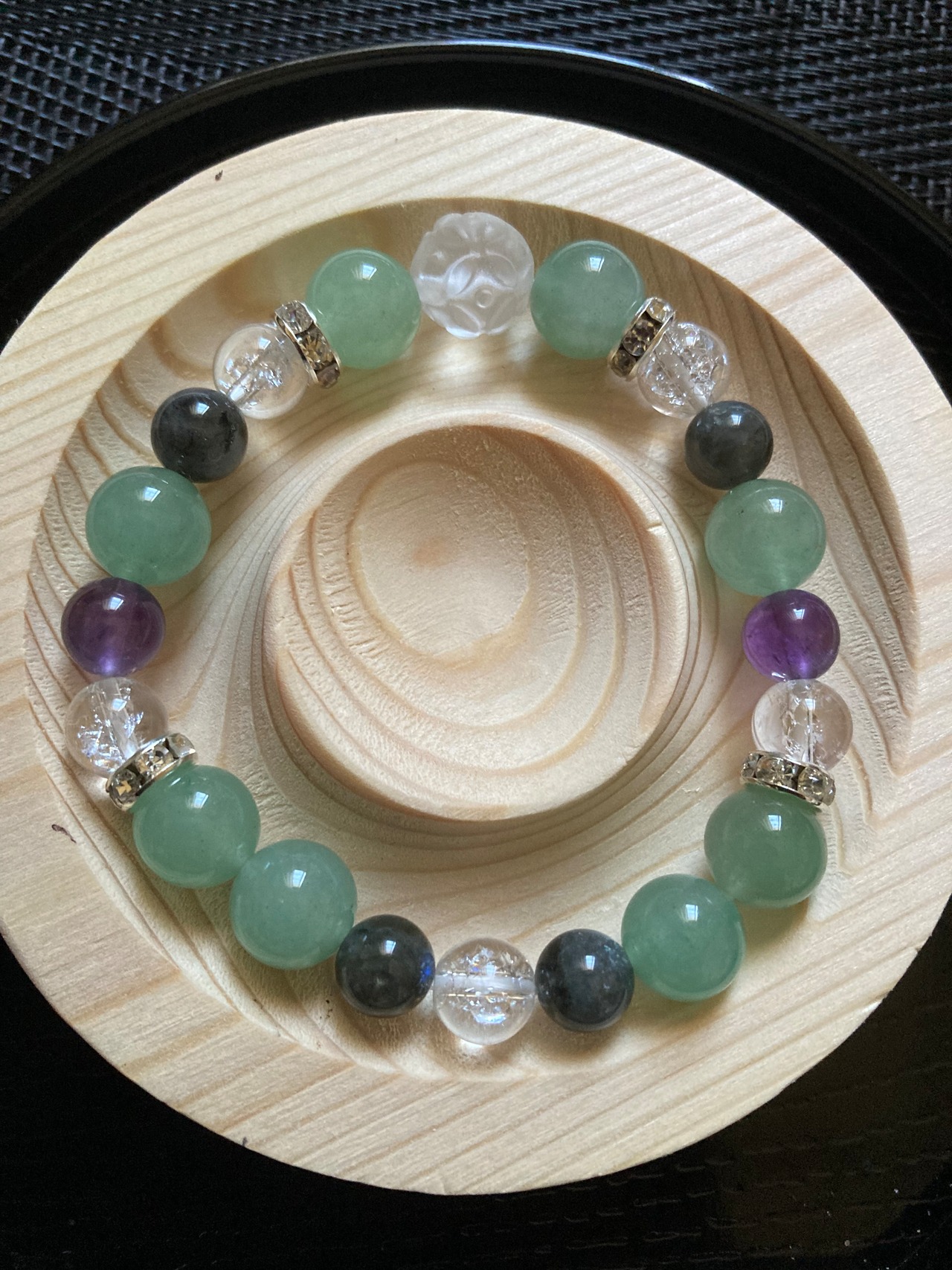 四つ葉のクローバーパーツの天然石ブレスレット♪