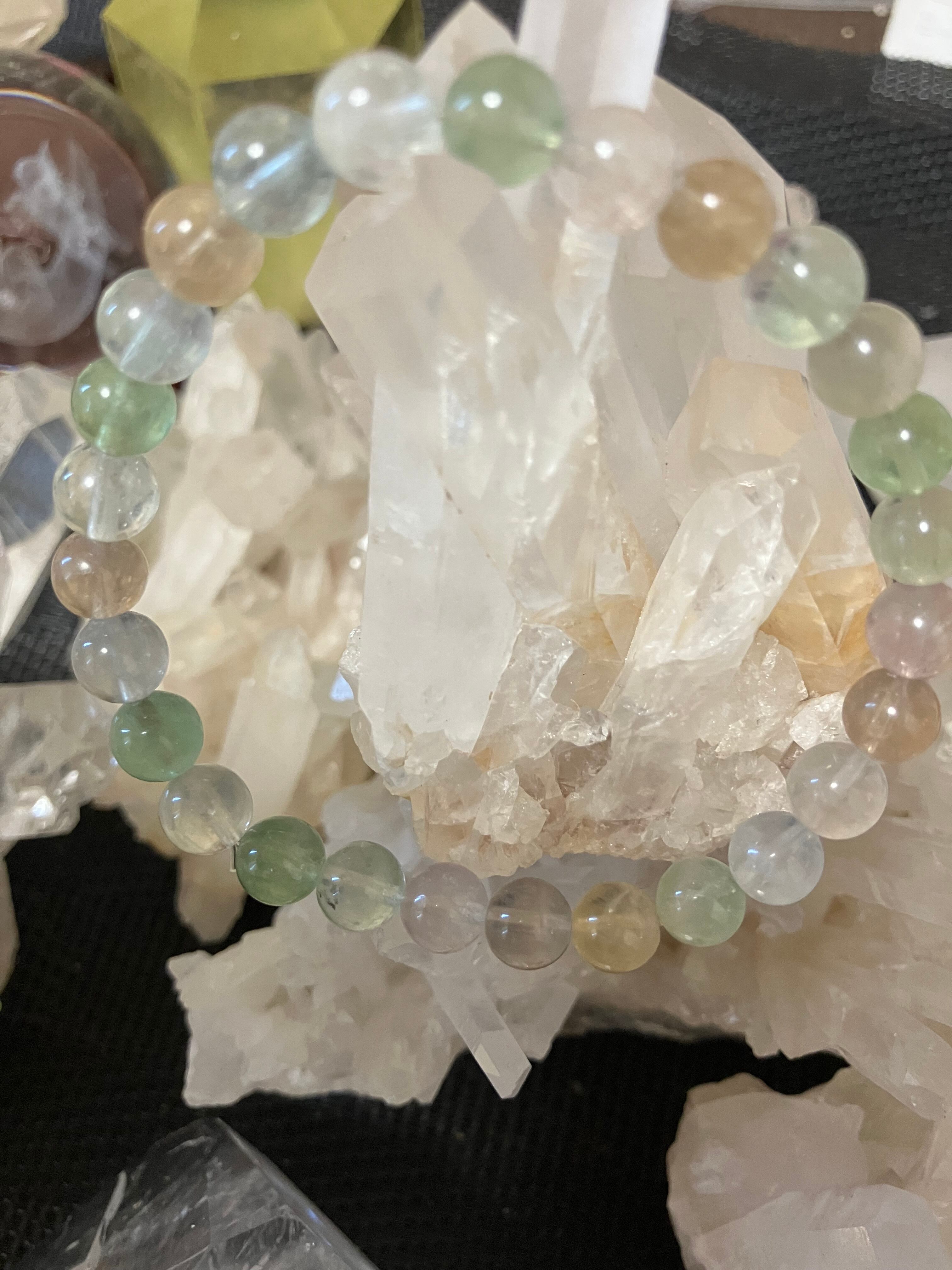フローライトは精神面への影響が高く、ストレスや心の疲れを癒し、心身の調和をもたらし、感情の乱れや混乱を防ぐと言われてます。